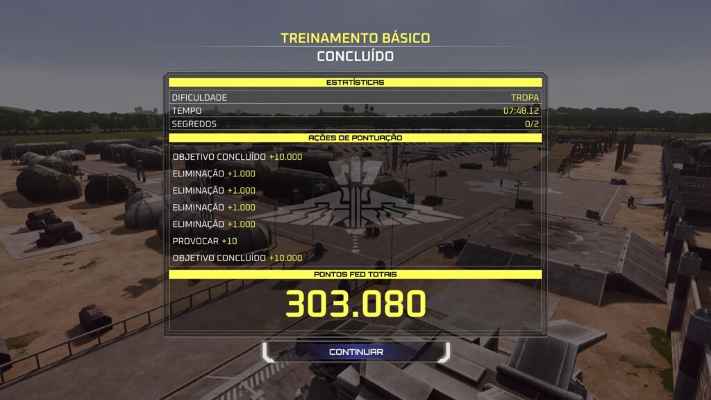 Logo nos primeiros minutos, o jogo deixa claro que está inserido no mesmo cenário futurista em que a humanidade vive em conflito permanente contra criaturas alienígenas. A narrativa é apresentada como se fosse um produto de propaganda militar produzido pela própria Federação, transformando os combates em algo que parece tanto treinamento quanto espetáculo patriótico.