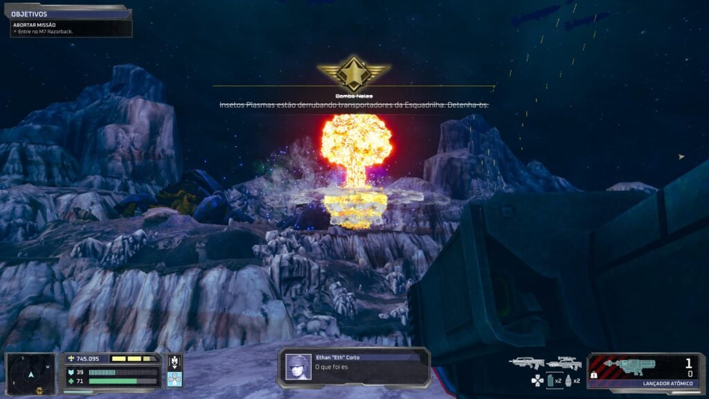 A proposta aqui é simples: entrar em combate contra hordas de insetos gigantes em batalhas espaciais cheias de caos, propaganda militar e ironia. Mas por trás da superfície de tiros e explosões existe uma tentativa clara de brincar com a estética e o discurso do universo original.