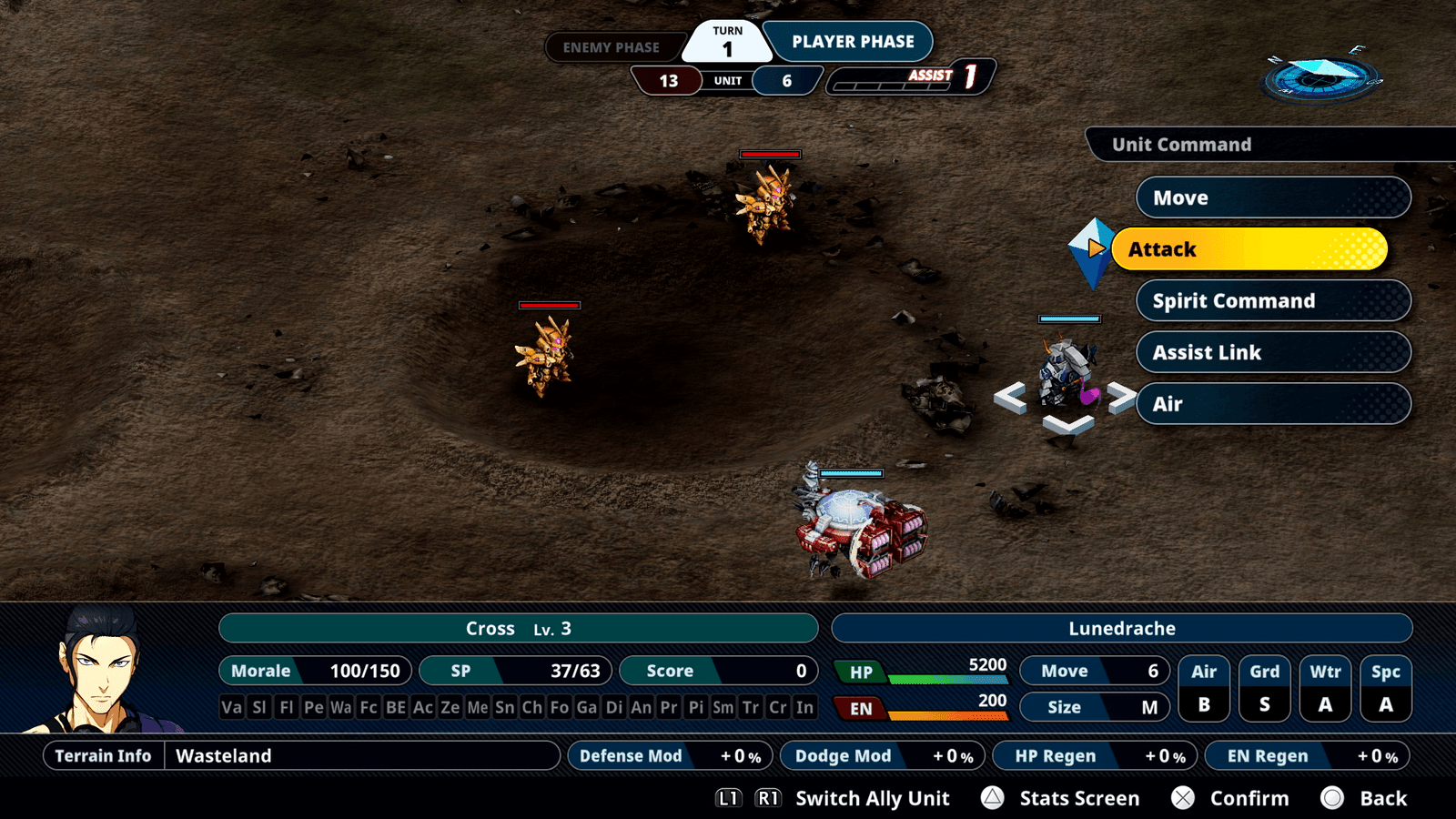 Quem já jogou SRW vai se sentir em casa: mapas quadriculados, combates em turnos, nada de permadeath, mas ainda assim um bom nível de desafio. Os modos normais são tranquilos, mas se você quiser sofrer de verdade, tem um Very Hard esperando.