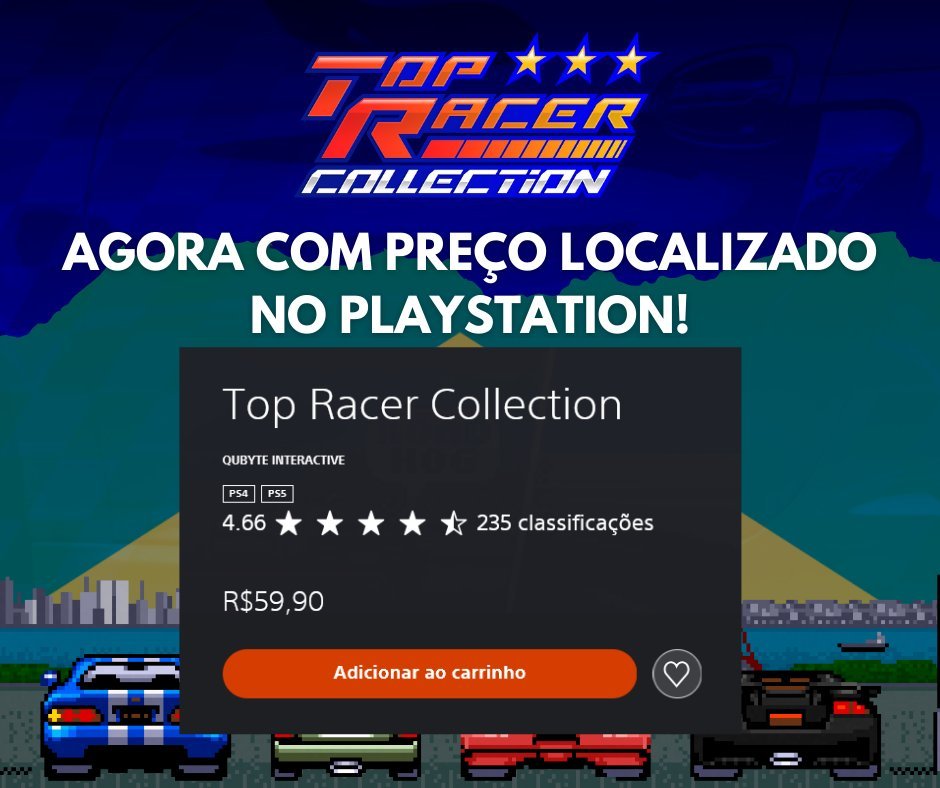 A QUByte Interactive anunciou que Top Racer Collection recebeu um preço localizado na PS Store brasileira.