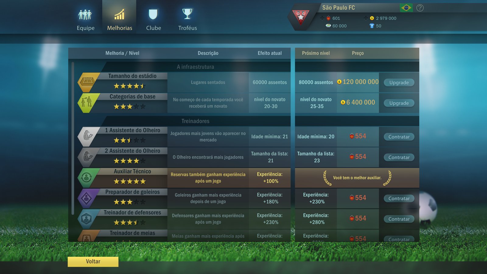 • Sistema de melhoria do treinador: desenvolve o teu estilo com várias habilidades. Vais focar-te na promoção de jovens talentos, no treino intensivo ou em transferências inteligentes?