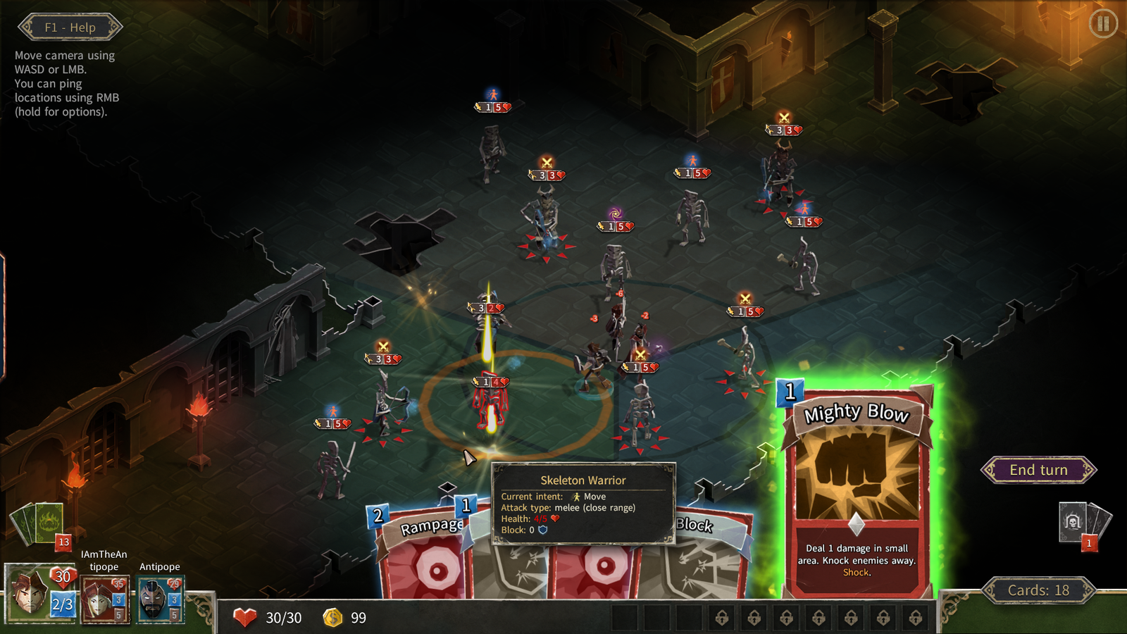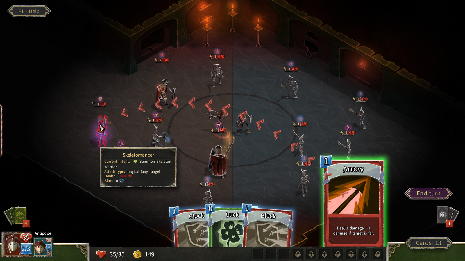 HELLCARD suporta batalhas cooperativas com até três heróis que enfrentam as hordas do Archdemon. No modo de um jogador, podes descer às masmorras sozinho ou recrutar companheiros controlados pelo computador. No modo multijogador, os teus amigos ou desconhecidos podem ajudar-te a combater as hordas do inferno.