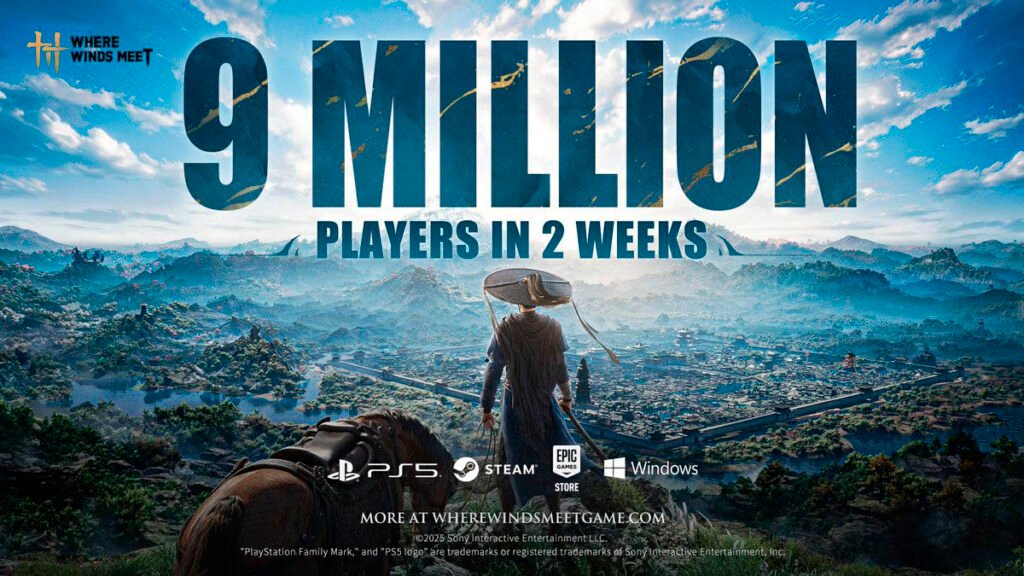 A NetEase anunciou que Where Winds Meet alcançou a marca de 9 milhões de jogadores em duas semanas.