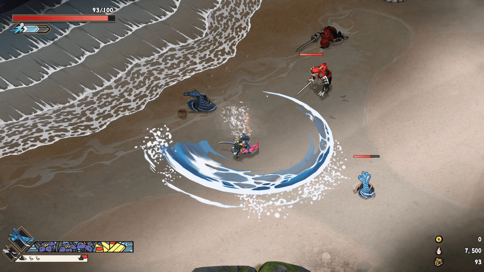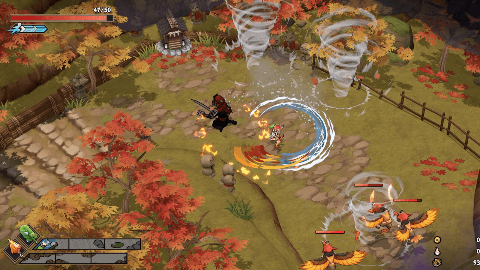 Confesso que antes de colocar as mãos no game eu sentia nele uma similaridade com Hades, Death’s Door e Bastion mas o jogo absorve pequenos detalhes de cada e apresenta um corpo diferente e muito interessante. A mecânica de combate em conjunto com as armas, proporcionam tanta variação e compartilham inclusive de alguns aspectos que torma o gameplay delicioso de ser explorado, mesmo em trajetórias de loop entre as várias dungeons do game, só pra se aprimorar cada vez mais!